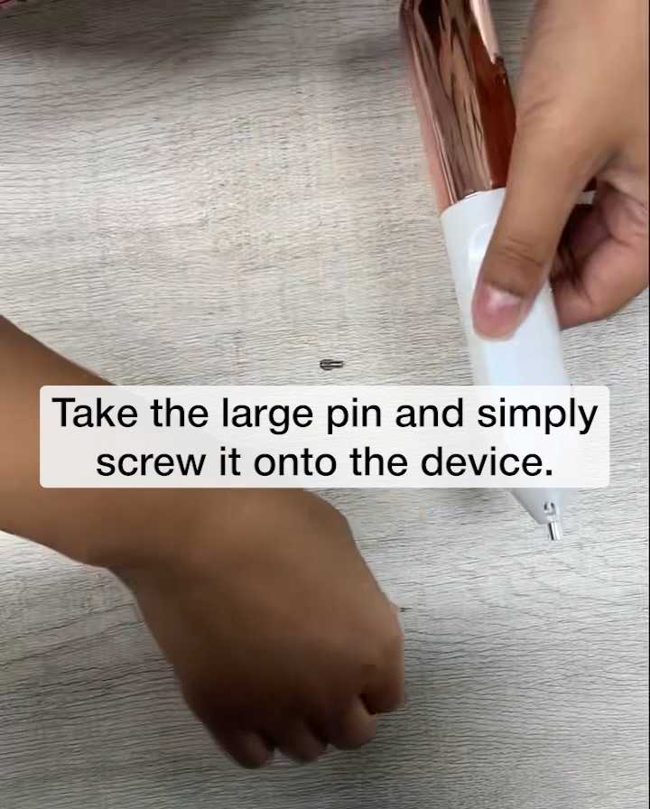 Step-by-step guide for attaching the large pin tips for bigger or thicker skin tags. Covers proper threading and safety checks.