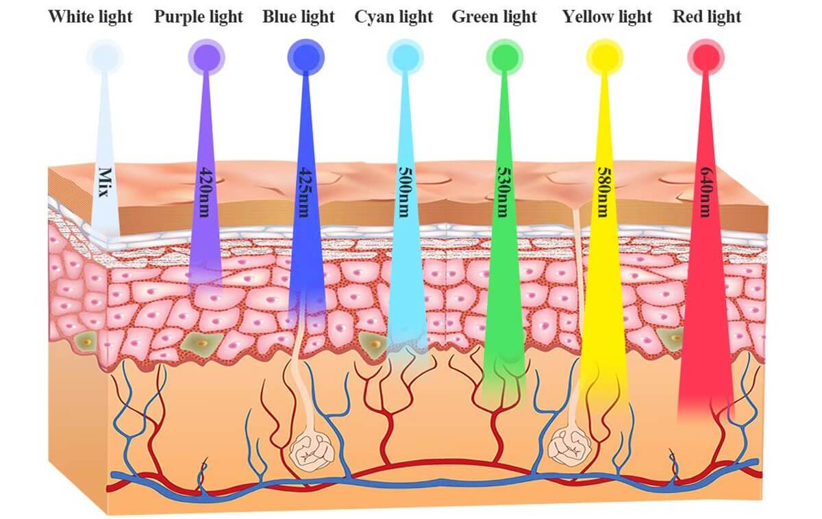 630nm red light penetrates deep into the dermis to stimulate fibroblasts and boost collagen production, reducing wrinkles and fine lines
